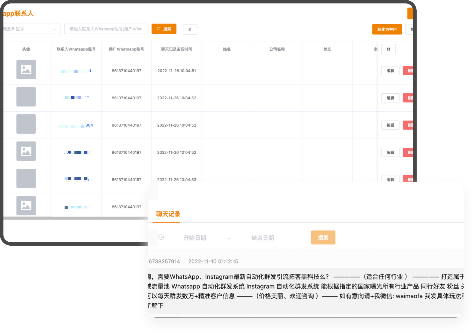 WhatsApp聊天记录信息及时自动备份云端,重要客户资产归档系统,无需担心客户资产丢失与账号的封禁。