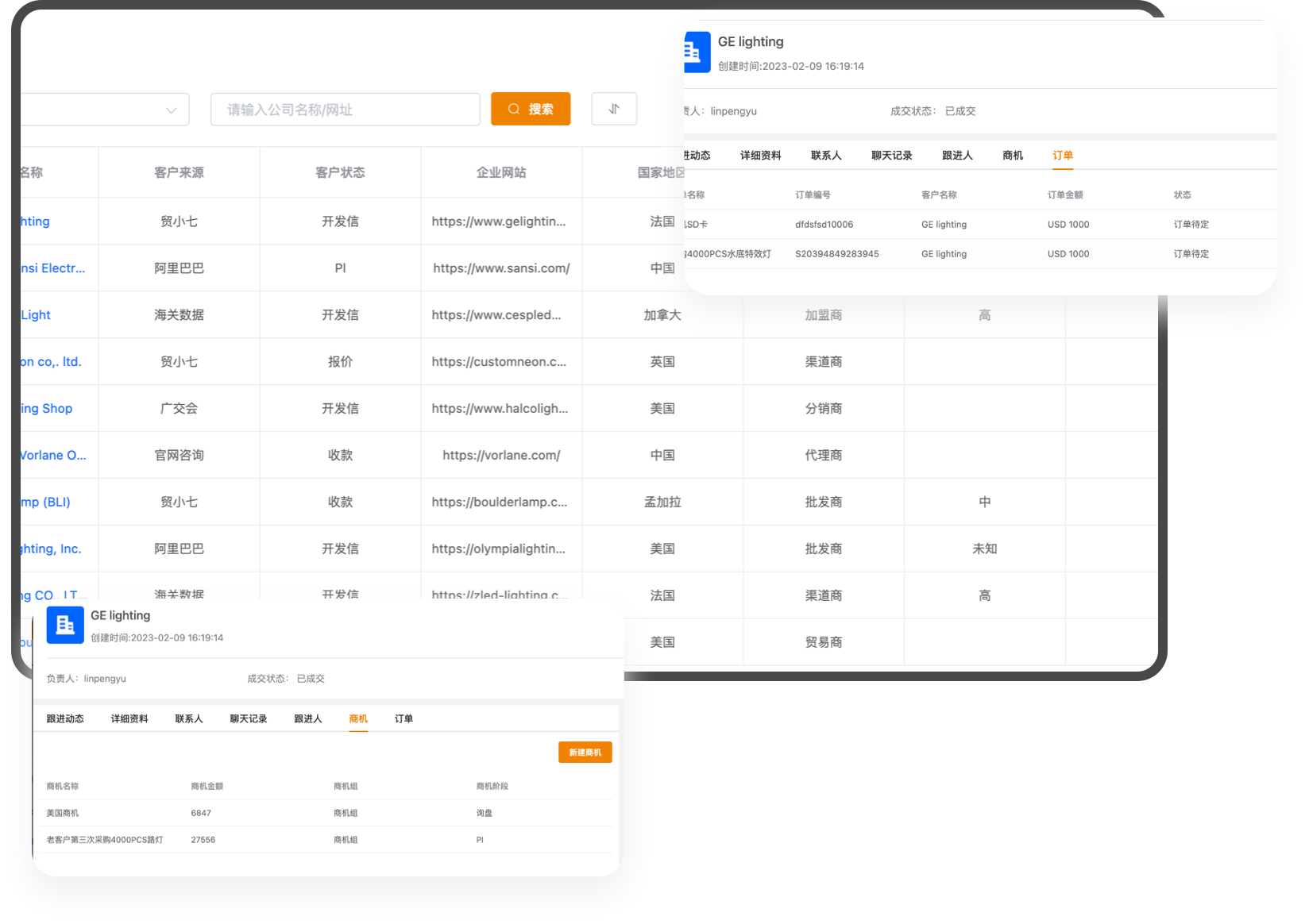 客户所产生的商机、订单数据支持集中化管理,快速了解客户关联的交易数据,了解销售进度,及时做出下一步销售策略。
