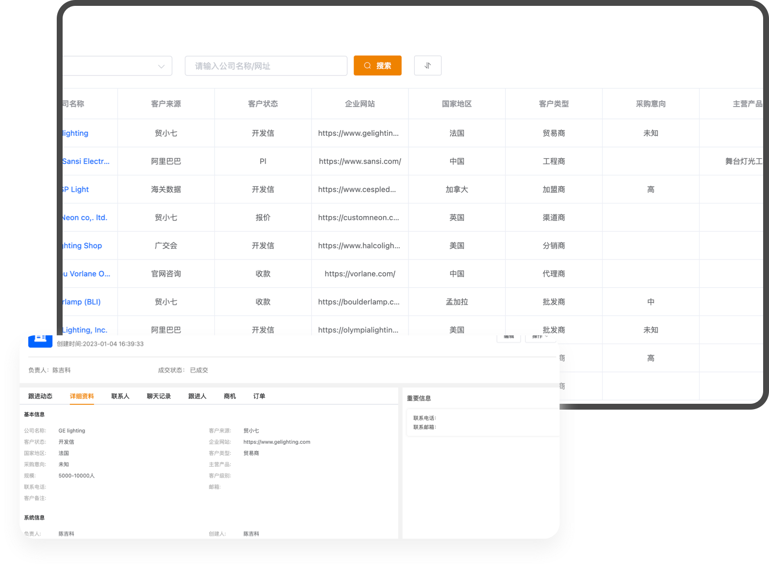 客户所产生的邮件往来、WhatsApp聊天记录都将自动归档于客户管理中,方便使用者及时了解客户沟通进度,新业务员也更容易上手跟进。