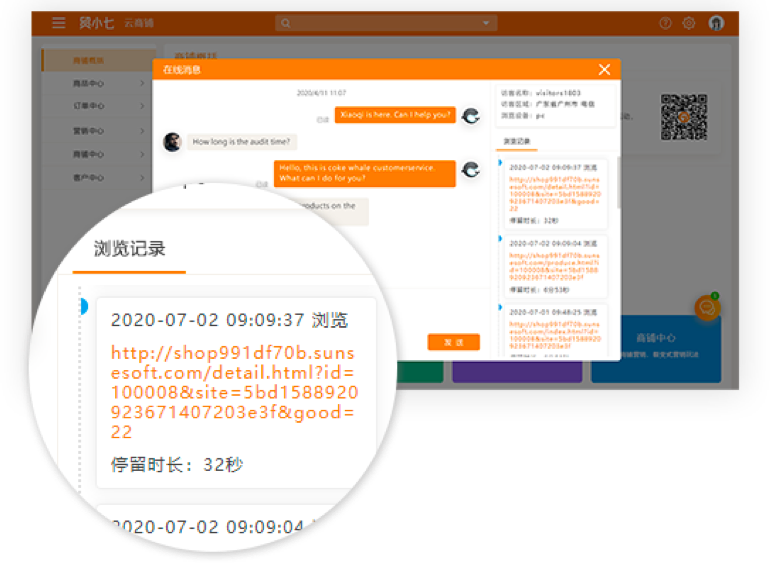 B2B云商铺内置在线即时会话功能,采购商可随时与企业进行实时在线沟通,聊天的同时,还可以了解到采购商的商品浏览轨迹,更加精准的洞察采购商的需求。