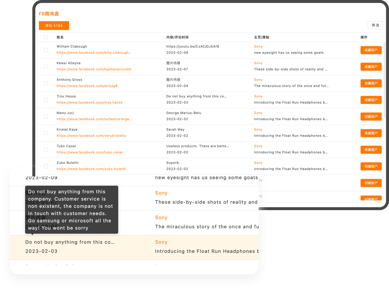 AI机器人24小时监控Facebook主页内容,自动获取同行主页最新动态以及评论人信息,精准查询关键词评论,获得有效询盘